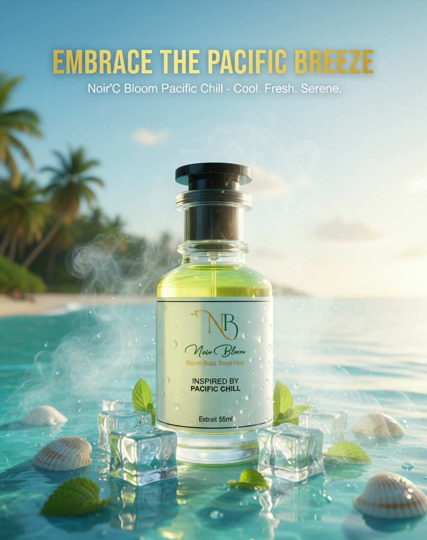 The Pacific Breeze — a refreshing blend of ocean mist, citrus, and soft musk that captures the calm and confidence of the sea.